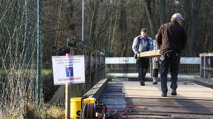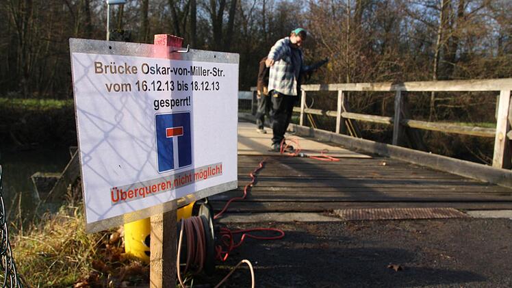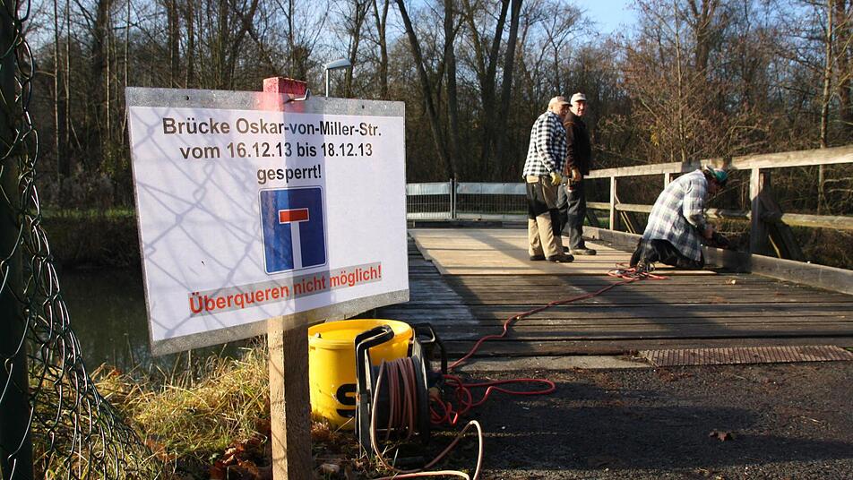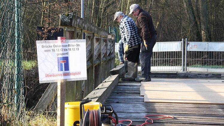 Für Laster der Stadtwerke "Die Brücke war damals notwendig, als wir die Wehranlage neu gebaut haben", berichtet Mäutner. Vor gut 15 Jahren sei die Konstruktion über den Wehrkanal neben der Saale gelegt worden, damit die Stadtwerke das Wehr am E-Werk anfahren können.