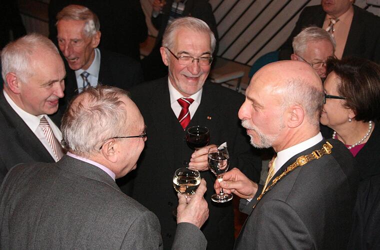 Auf Bewährtes setzte die Jazz-Gruppe der Bad Kissinger Musikschule (tolle Musik) bei ihrem letzten Stück des Abends: Die Gäste im Tattersall kramten den Liedzettel hervor und stimmten das Frankenlied an. Es fehlte nichts bei diesem Neujahrsempfang 2014. Ach ja, Michl Müller vermisste etwas, den Wahlkampf in Bad Kissingen: Nix los. "Von der Wahl merkt man in Bad Kissingen nichts. Vielleicht ist es eine geheime Wahl? Verstecken sich die Wahlkämpfer im Untergrund, im neuen Kanal?", spekulierte er. Der Künstler wünschte ihnen jedenfalls "toi, toi, toi" für den Wahlkampf mitten in der Faschingszeit.