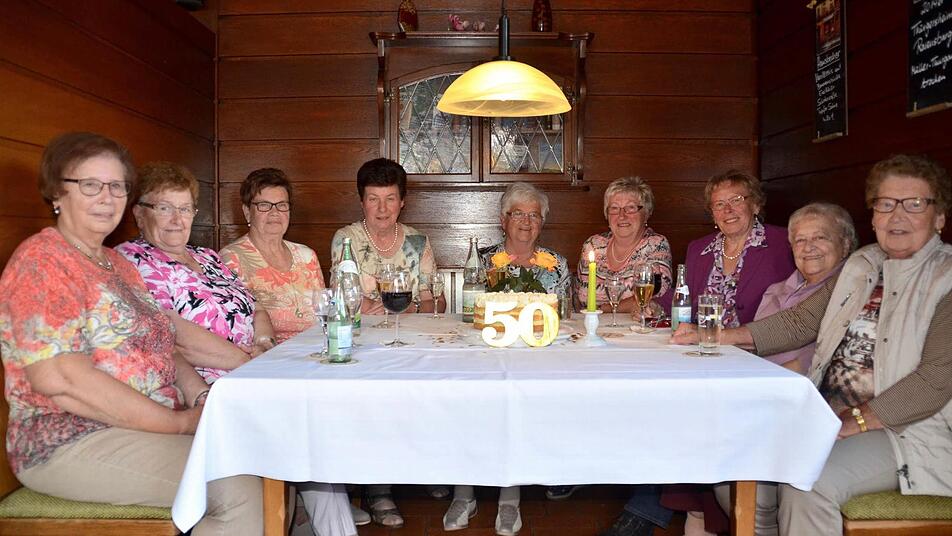 Dort stieß dann Paula Reuß zur Truppe, weshalb aus den lustigen Acht Neun wurden. "Und wir hatten immer unseren selbst gebackenen Kuchen dabei", erzählt Marianne Schwarz. Eine Tradition, die bis heute besteht. "Ich habe heute für unser 50-Jähriges eine Sekttorte gemacht", verkündet Ingrid Schuck. Ansonsten ist alles beim Alten geblieben, lediglich die Treffen der Damen wurden etwas reduziert.