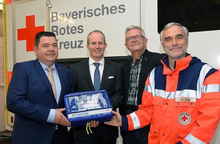 Das Spezialgerät im Notarztfahrzeug stellt somit eine wesentliche Verbesserung akut lebensbedrohlich erkrankter Patienten dar. "Wir sind unserer Zeit gerne etwas voraus", so Leitender Notarzt Dr. Ralph Brath, der zusammen mit dem Rot-Kreuz-Kreisvorsitzendem Dr. Alexander Siebel das über 6000 Euro teure Gerät in Empfang nahm. 5000 Euro hat der Lions-Club und die Stiftung bezahlt, rund 1000 Euro hat der Hersteller, die Firma Storz beigesteuert. Jetzt bleibt nur noch die Hoffnung, dass sich für die beiden anderen Notarztfahrzeuge in Hammelburg und Bad Brückenau ebenfalls noch Spender für ein Videolaryngoskop finden, so die Verantwortlichen des hiesigen Roten Kreuzes.