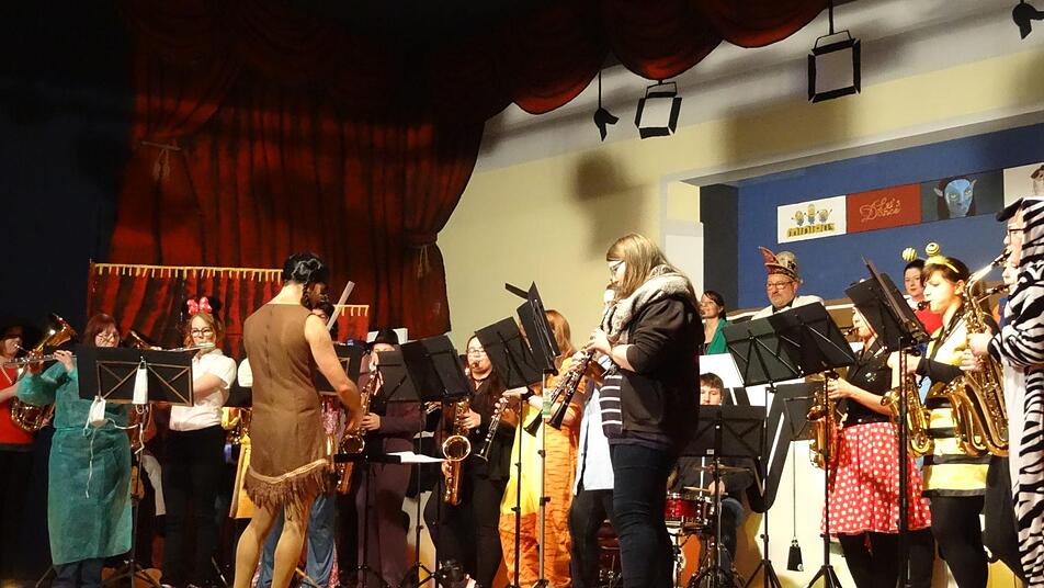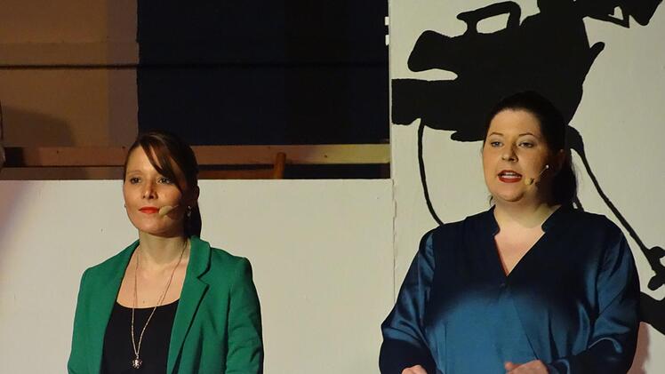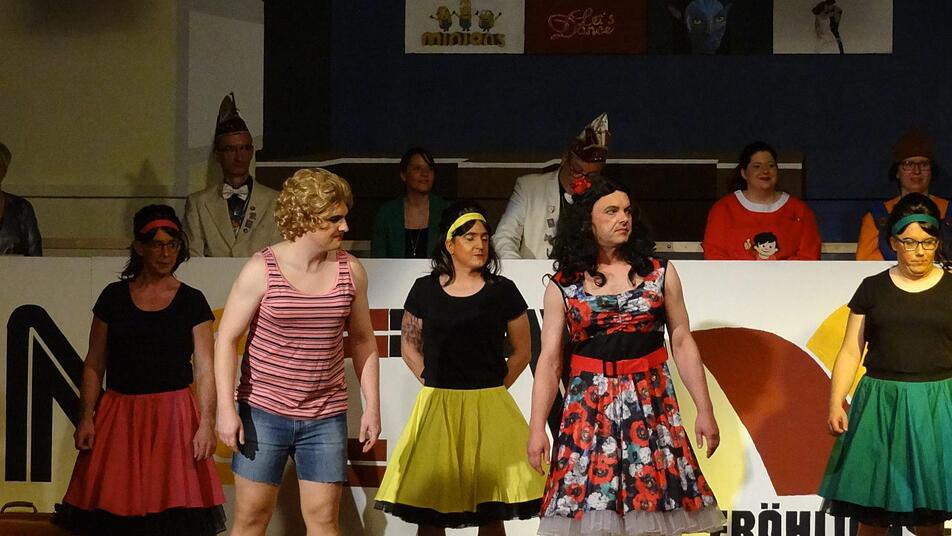 Durch den Abend führte das Trio Gitti Klöffel, Bärbel Brumm und Maren Brumm als Regisseurinnen respektive Moderatorinnen. So auch zum nächsten Programmpunkt, der Marschtanzgruppe, die eine Vorführung zum geradezu legendären Soundtrack von "Der Zauberer von Oz" von 1939 vorbereitet hatte, wobei das Alter der Melodien durch die lebendige Verarbeitung nicht im geringsten spürbar wurde. Zeitlose Musik eben, gepaart mit dem mitreißenden Tanz der Nüdlinger Närrinnen.