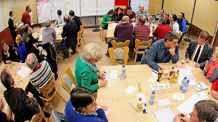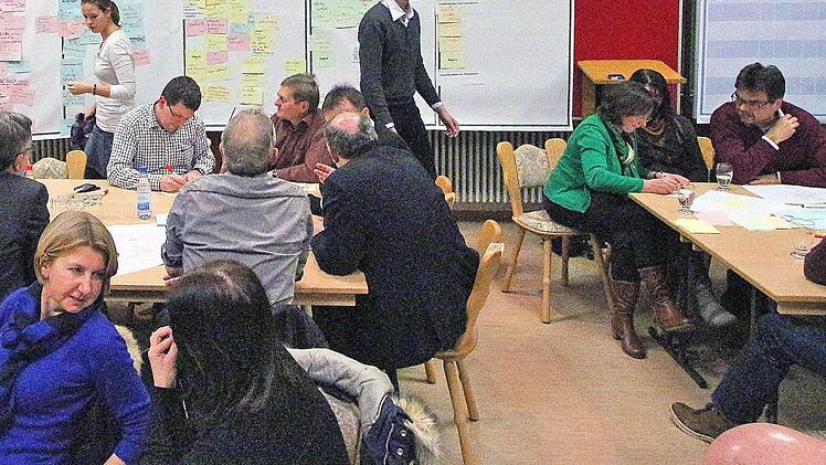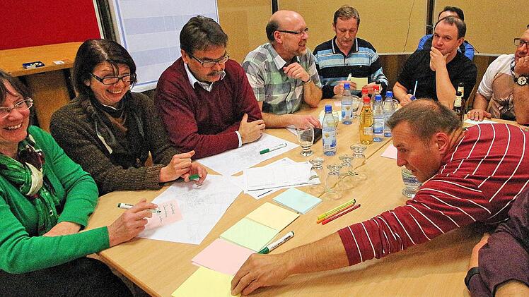 Die Bürger konnten auf Zetteln Stärken und Schwächen in fünf Themenbereichen formulieren. Etliches fiel den Anwesenden beim Themenkomplex "Dorf und Siedlung, Daseinsvorsorge" ein. Hier wurden unter anderem Negativ-Punkte wie "Zersiedlung", "Altort unattraktiv", "fehlende mittel- bis langfristige Ortskernplanung", "Leerstände im Ortskern", "keine öffentliche Toilette in Haard", "kein Dorfladen in der Ortsmitte", "kein Altersheim in Nüdlingen" erwähnt. Dass es außer einer Metzgerei keine Lebensmittelversorgung in Haard gibt, wurde ebenfalls moniert.