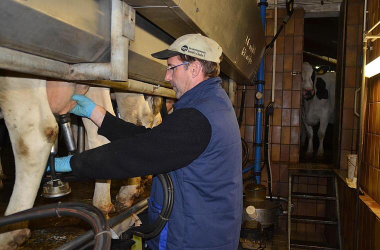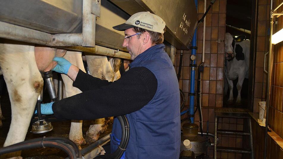 "Unterfranken ist gut durchstrukturiert. Wir haben zwar weniger Betriebe als im Süden, dafür aber welche mit einem etwas größeren Viehbestand", erklärt Norbert Götz. Er hält auf seinem Hof, den er konventionell betreibt, etwa 50 Milchkühe der Sorte Schwarzbunte sowie weitere Rinder zur Zucht. Eine Kuh gibt bei ihm im Durchschnitt 25 Liter Milch pro Tag, wird morgens und abends jeweils gegen halb sechs, sechs Uhr gemolken.