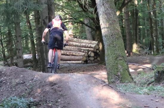 Der Flowtrail ist eine gebaute Strecke, die kurz unterhalb des Neustädter Hauses beginnt. "Das ist so konzipiert, dass das jeder fahren kann", erklärt Andi Rohe, Flowtrail-Beauftragter des RWV-Haselbach. Man solle allerdings nur auf einem Mountainbike in den Trail fahren und sich die Strecke selbst zutrauen. Für den Fahrspaß sind Elemente in die Strecke eingebaut, zum Beispiel Wurzeln, Anliegerkurven oder Tables.