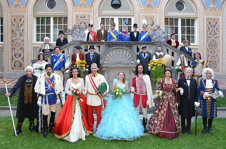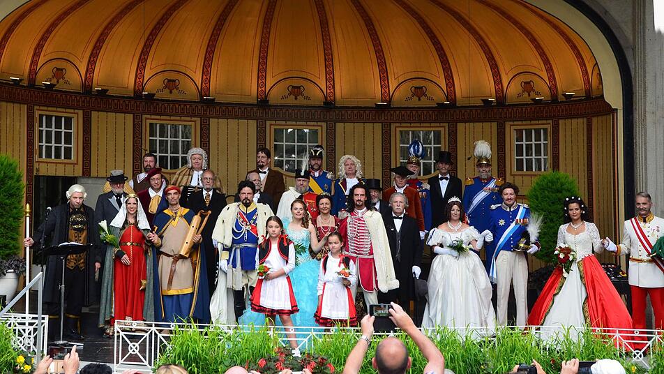 So war es dann nicht verwunderlich, dass sich die historischen Persönlichkeinten für das "offizielle Pressefoto" unter Ausschluss der Öffentlichkeit in Bad Kissingens schönstem Garten, dem Schmuckhof, aufstellten. Insgesamt gesehen ist der Kurgarten mit Musikpavillon eine gute Alternative für die Vorstellung der historischen Persönlichkeiten, wenngleich es da noch einige Verbesserungsmöglichkeiten gibt.