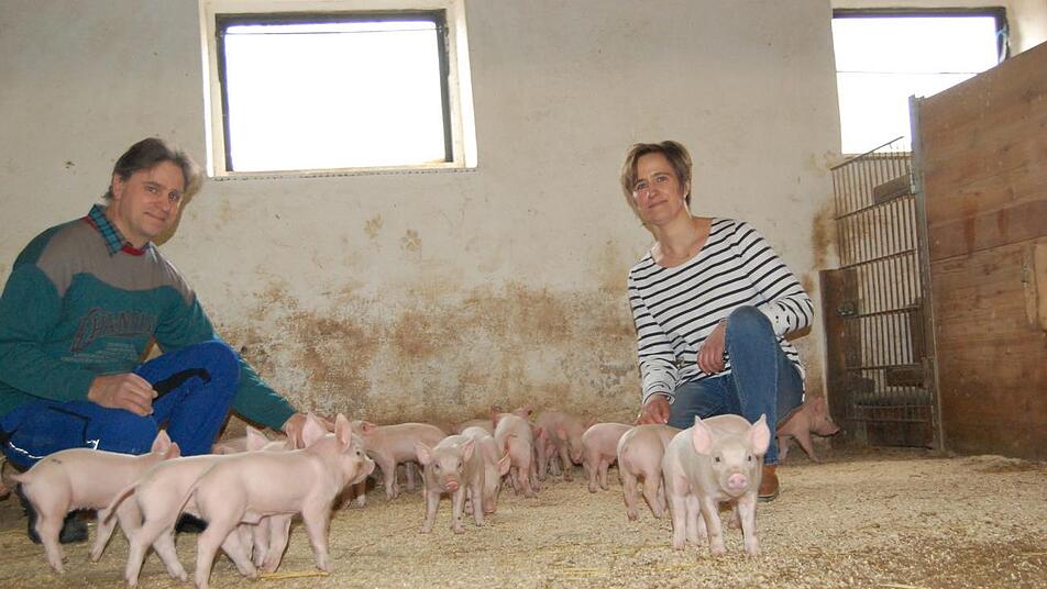 Es grunzt und quiekt, wenn Georg Kaufmann und Petra Schaub ihren Aufzuchtstall betreten. Zahlreiche kleine Ferkel wuseln um ihre Beine herum, andere lassen sich gar nicht stören und hängen weiter an den Zitzen ihrer Muttersauen. Auf dem Aussiedlerhof bei Ramsthal betreiben die beiden Geschwister die größte Bioferkelzucht im Landkreis Bad Kissingen.