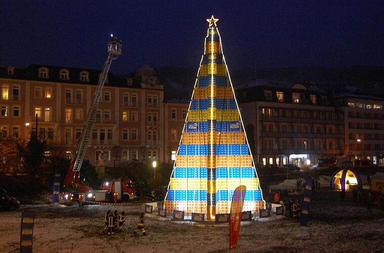 Bierkasten-Weihnachtsbaum: Der Riese steht noch bis 1. Januar