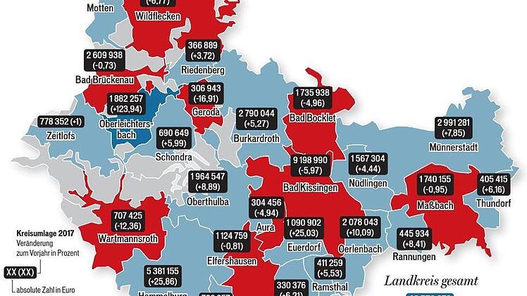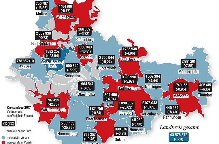 Größter Umlagen-Zahler ist die Stadt Bad Kissingen: Rund 9,2 Millionen Euro muss die Kreisstadt heuer an den Kreis überweisen. Die Reduzierung des Hebesatzes macht rund 143 000 Euro aus. "Ich hätte mir natürlich mehr gewünscht, da ist noch Luft nach oben, aber ich weiß um die Investitionen, die bevorstehen", kommentierte Oberbürgermeister Kay Blankenburg (SPD) die Senkung. Wichtig sei ihm, dass es in den kommenden Jahren nicht gleich wieder eine Erhöhung des Hebesatzes gibt.