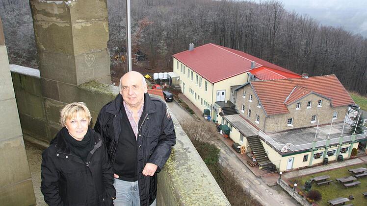 Wer zum Brauereigasthof am Wittelsbacher Turm will, braucht entweder Ortskenntnis oder ein Navi: Das schmucke Gasthaus mit riesigem Biergarten liegt am Ende der Straße hinter der Kreis-Mülldeponie. Doch der Weg lohnt sich: Geschäftsführer Barbara Apfelbacher (54) und Heribert Wachtl (69) haben im Wald zwischen Arnshausen und Wirmsthal ein lohnendes Ausflugsziel aufgebaut. Und die Vision geht weiter: "Wir haben uns jetzt etabliert, und wollen nun den zweiten Schritt machen", kündigt Wachtl an, dass voraussichtlich im kommenden Jahr für zwei Millionen Euro eine Blockhaus-Hotelanlage hinzu kommen soll.