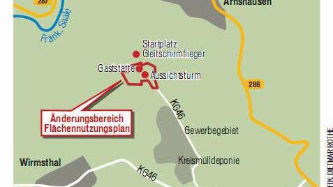 Ohne Konsequenzen blieben auch mehrere Einwände gegen Rodungen: Laut Verwaltung werden die Blockhütten zwischen die Bäume gebaut. "Durch die Planung erfolgt keine Beeinträchtigung des Biotops", heißt es in der Stellungnahme der Verwaltung, und weiter: "Ziel der Planung ist es, den Waldcharakter zu erhalten." Keine Beeinträchtigungen oder Hinderungsgründe sieht die Stadt auch durch das Bau-Denkmal "Wittelsbacher Turm" und bei der Zufahrt vorbei an der Kreismülldeponie. Auch die Belange des Gleitschirmvereins Saaletal, der in dem Gebiet einen Startplatz unterhält, sollen berücksichtigt werden.