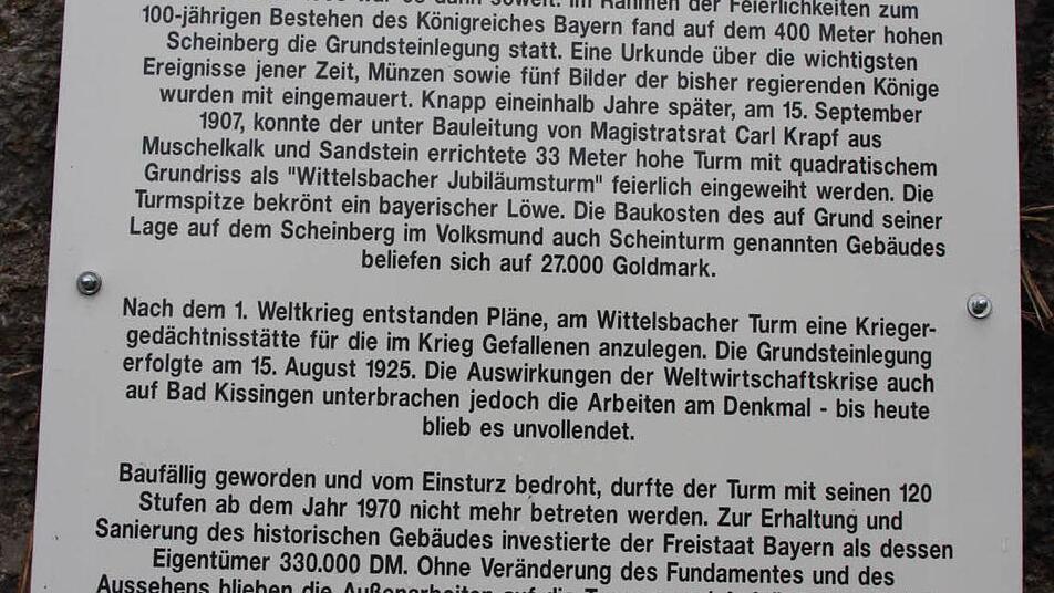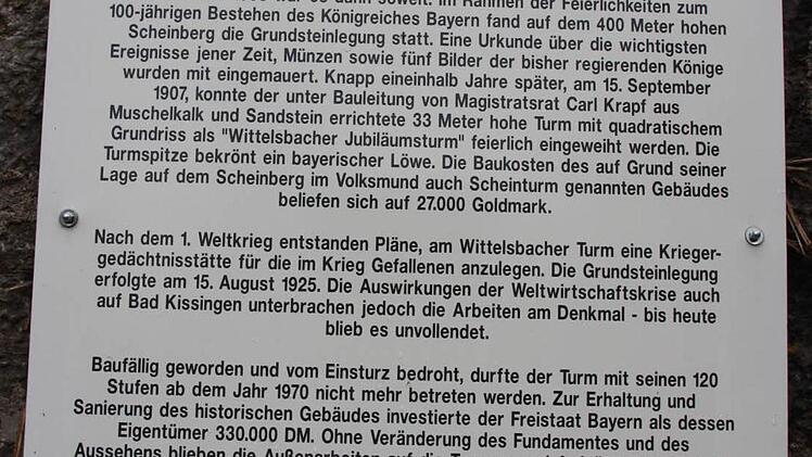 Das Projekt erinnert an die Wurzeln des Gasthauses: Im Jahr 1908 entstand auf dem Scheinberg neben dem neuen Turm (siehe Geschichte unten) eine Blockhütte zur Bewirtung der Sommerfrischler, die aus Bad Kissingen und anderen Orten kamen. Später wurde eine Gaststätte errichtet. Im Jahr 1999 kauften Apfelbacher und Wachtl das Areal und investierten kräftig: "Vorher war's eine kleine Gaststätte, jetzt haben wir 250 Sitzplätze drinnen und 500 draußen", erzählt Heribert Wachtl. Ende 2002 eröffneten sie die Erlebnis-Brauerei, in der im Winter alle 14 Tage und im Sommer wöchentlich 20 Hektolieter Bier gebraut werden.