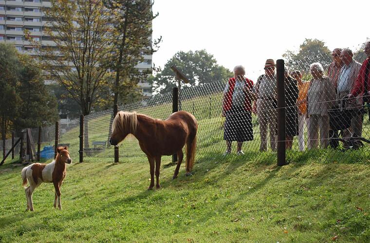 Bad Brückenaus Kurstiftbewohner besuchen täglich ihr Shetlandpony, das vor zwei Wochen das Licht der Welt erblickte.