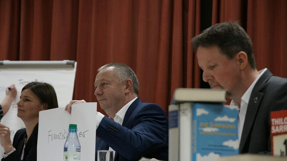 Doch da wie bei jedem Menschen das Leben auch bei Landrats-Kandidaten mit Lernen beginnt, wurden sie nach einer kurzen Begrüßung erstmal in die Schule geschickt. Die "Prüfer" Borst und Farkas fragten Daten und Fakten zum Landkreis Bad Kissingen ab; "Protokollantin" Will notierte die Punktezahl.