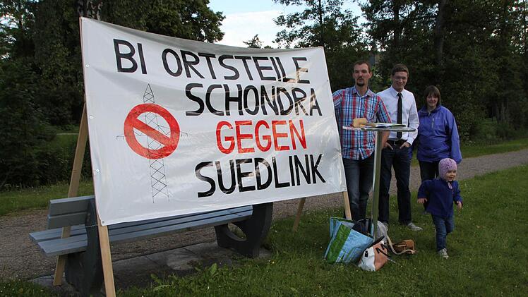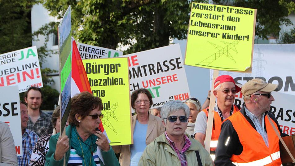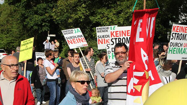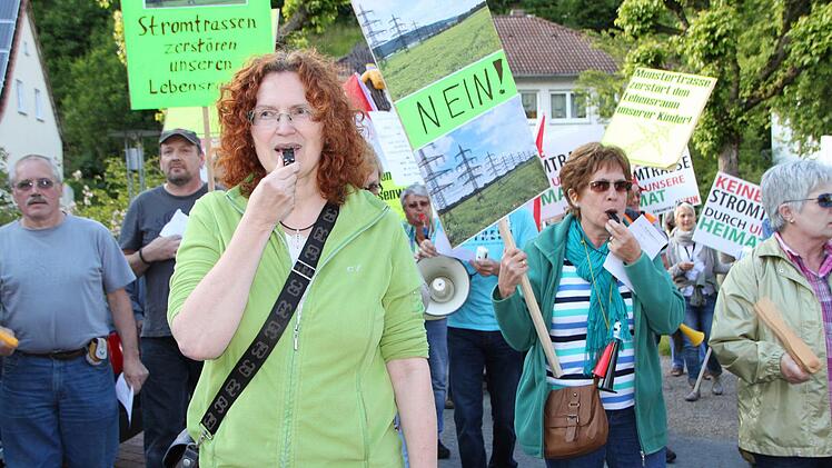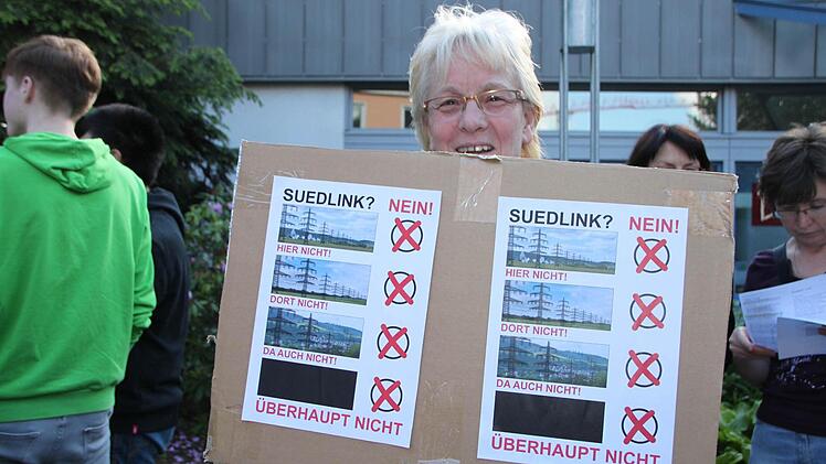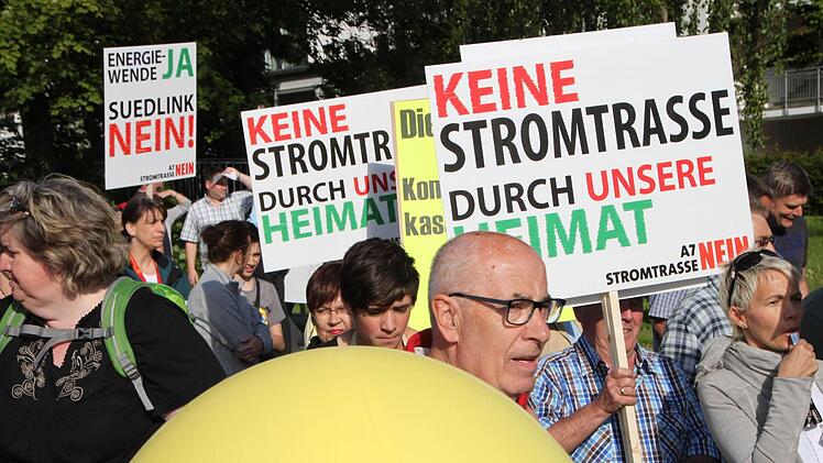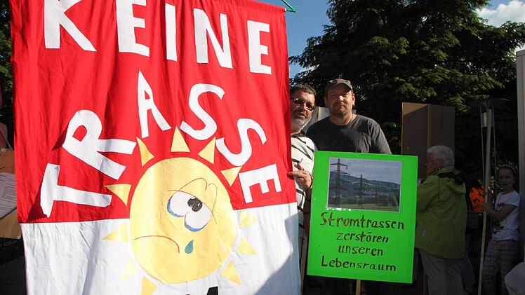 Lautstark und unübersehbar protestierten am Donnerstag rund 250 Männer, Frauen und Kinder gegen die Stromtrasse "SuedLink". Landtagsabgeordneter Sandro Kirchner brachte den Demonstranten Nachrichten aus München mit.