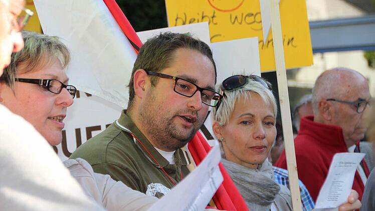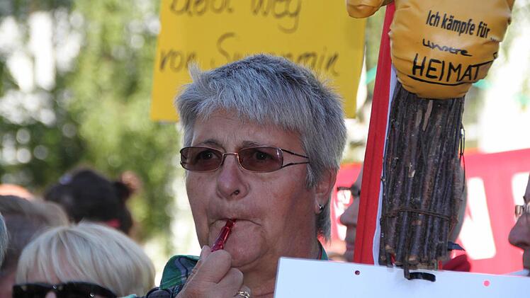 Sandro Kirchner (CSU) trifft ein. Er kommt direkt aus München. Als Abgeordneter für den Landkreis Bad Kissingen sitzt er im Wirtschaftsausschuss des Bayerischen Landtags. "Alle Beschwerden sind einstimmig gewürdigt worden", berichtet er den Demonstranten von der Ausschusssitzung just an diesem Tage. Das Ende bleibe zwar offen, die Argumente der Bürger seien aber in München angekommen. Und dann brüllt die Menge noch einmal. Es wird nicht das letzte Mal sein:
