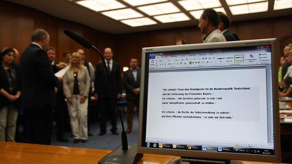 Vereidigung 16 neue Kreisräte wurden gestern vereidigt: Von der CSU Martin Wende, Armin Warmuth, Harald Hofmann, Edgar Thomas und Michael Heppes, von der SPD Britta Bildhauer, Achim Bieber und Thomas Menz, von FW/CBB Sabine Oschmann-Hockgeiger, Stefan Lang und Wolfgang Dünisch, von der PWG Beatrix Lieb und Dieter Muth, von den Grünen Volker Partsch, von der ödp Norbert