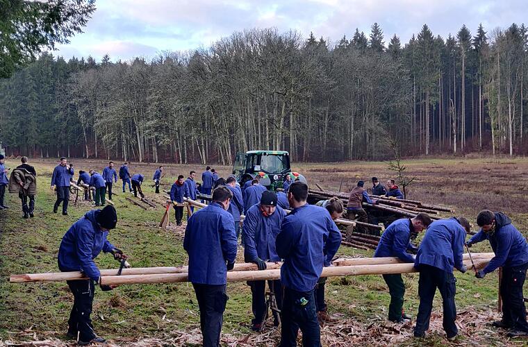 Die erste Arbeitshürde hatten die Planburschen schon im Januar 2020 genommen: Unter großem Helau waren sie in den Rannunger Forst einmarschiert und hatten ein paar große Bäume gefällt, die dann geschält werden mussten. Die kräftigen Stämme sollten als Stütz-Schwalben für den riesigen Planbaum herhalten, der kurz vor dem Fest aufgestellt werden sollte.