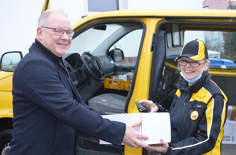 "Wenn ich noch zehn Jahre jünger wär', könnt' ich noch ein bisschen weiterarbeiten", sagt Christine Apel - und lacht. Sie ist jetzt 69 und arbeitete schon längst übers Rentenalter hinaus. Mit 65 Jahren musste sie bei der Post zunächst offiziell in Rente gehen. Dann ließ sie sich aber wieder in Teilzeit anstellen. Daraus wurde schließlich erneut ein Ganztagsjob, erzählt die fröhliche Frau, während sie vor dem Haus Nummer 14 in der Dr.-Georg-Heim-Straße in den Kofferraum ihres gelben Postautos ab- und dann wieder auftaucht und der blonde Haarzopf hin- und her schlenkert.
