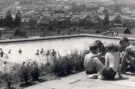Die Anlage mit dem familiären Charme am Hang der Centleite wurde im Juni 1967 eröffnet. Auf der Rückseite eines der historischen Fotos ist der 28. Juni als Datum des Geburtstagsfestes eingetragen. Das war jedoch ein Mittwoch. Vermutlich haben die Feierlichkeiten aber bereits am Wochenende zuvor stattgefunden. Das Wetter war jedenfalls hervorragend - als ob man es eigens dafür bestellt hätte. Bürgermeister Erich Schmitt und seine Gemeinderäten wohnten an diesem Tag zusammen mit den Maßbachern der Eröffnungszeremonie bei. Während die Festgäste nach dem offiziellen Teil noch zusammen standen, tummelten sich unten im kühlen Nass schon die ersten Wasserratten.