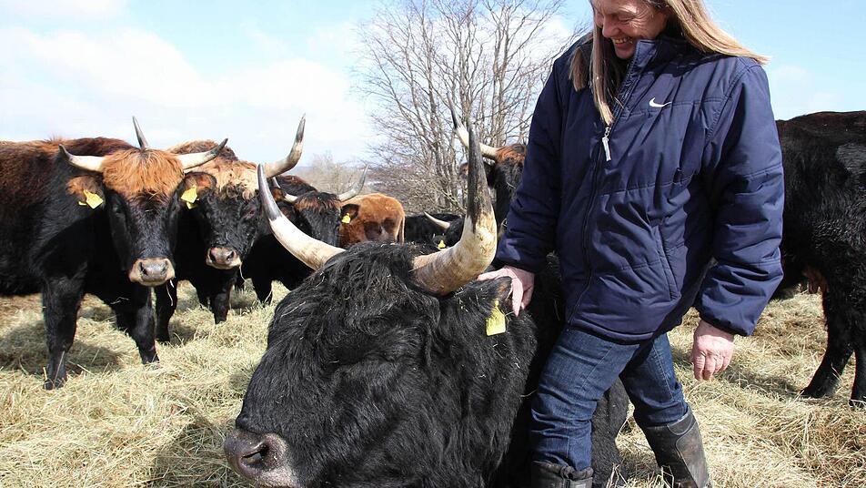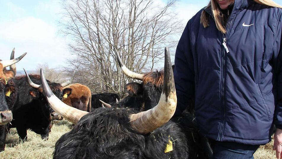 Carmen Kornester hält bei Fladungen mächtige Tiere mit einer besonderen Aufgabe: Ihre Auerochsen pflegen die Landschaft auf 800 Höhenmetern.