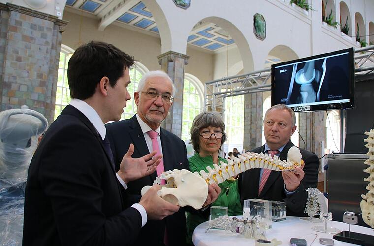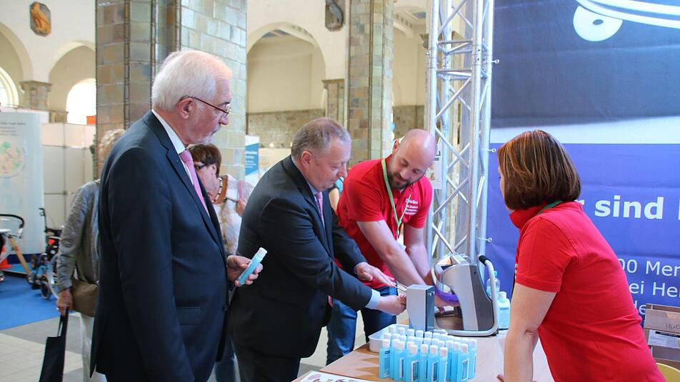 Einen der größten Stände in der Wandelhalle hat seit Jahren das Orthopädische Krankenhaus Werneck. "Viele Patienten wollen sich informieren, aber es kommen auch viele, die bei uns operiert wurden", erzählt Anästhesist Karl Amann. Bei den Gesundheitstagen seien auch immer Reha-Patienten aus ganz Deutschland am Stand, das passe zur breiteren Ausrichtung der Klinik: "Wir haben Patienten von Hamburg bis München", berichtet Amann, und: "Wir machen im Jahr 1500 Hüft- und 1200 Knie-Prothesen."