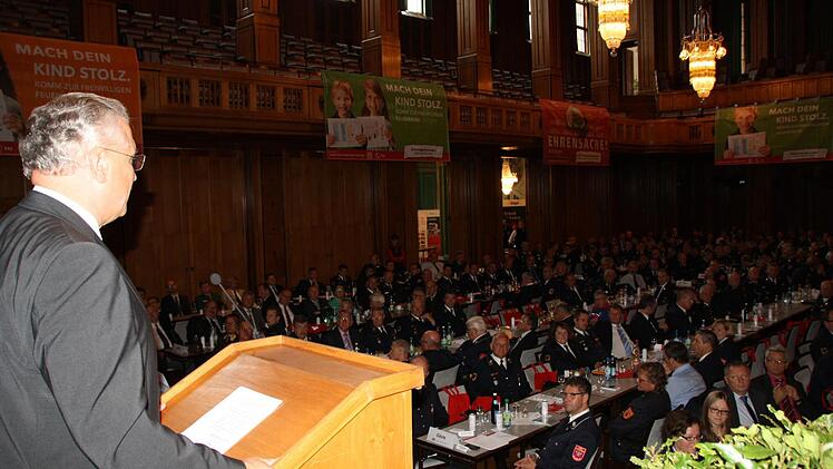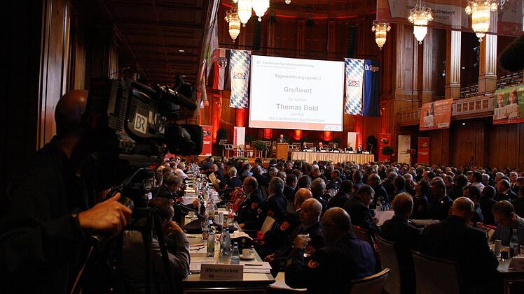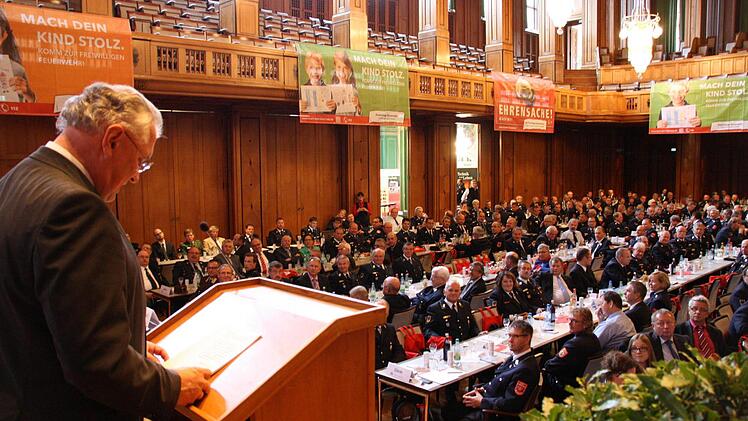 Mehr als 300 Delegierte aus ganz Bayern zogen am Samstag im Regentenbau Jahresbilanz. "Uns ist kein Weg zu weit", sagte Alfons Weinzierl, Vorsitzender des Landesfeuerwehrverbandes (LFV) Bayern. Die Landesverbandsversammlung wechsle quer durch alle Regierungsbezirke. Vor fünf Jahren sei mit Schweinfurt bereits eine unterfränkische Stadt Gastgeber gewesen. "Die Bezirke und Landkreise bewerben sich, und wir haben zum Glück immer genügend Bewerber", berichtet er über das Vergabeverfahren. Im kommenden Jahr sei Amberg in der Oberpfalz an der Reihe, 2016 dann Hersbruck in Mittelfranken.