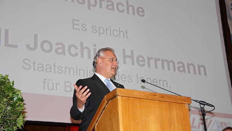 Ehrenkreuz für Herrmann Für seinen Einsatz für die Feuerwehren erhielt Herrmann die höchste Auszeichnung des LFV, das Ehrenkreuz in Gold. "Ich bin mehr denn je mit Begeisterung Feuerwehr-Minister", rief Herrmann den Delegierten zu. Und er versprach, sich auch weiterhin dafür einzusetzen, dass die Wehren eine gute Arbeitsgrundlage haben. Unter anderem kündigte er zusätzliche Stellen für die drei Staatlichen Feuerwehrschulen ein und berichtete über die Einführung des Digitalfunkes.