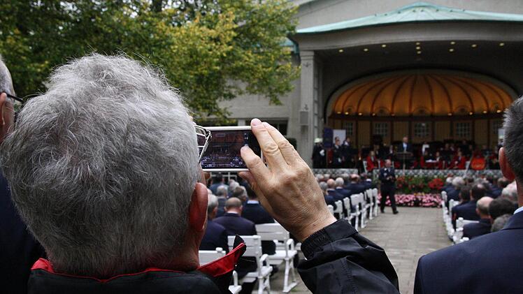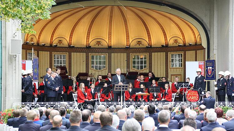 Zahlreiche politische Themen standen im Mittelpunkt der 21. Landesfeuerwehrtagung in Bad Kissingen. So diskutierten die mehr als 300 Delegierten über die Ausstattung der Feuerwehrschulen, die Verwendung der Feuerschutzsteuer oder der höheren Förderung von Anschaffungen. Vor dem Regentenbau gaben Vertreter der 115 Feuerwehren im Landkreis Bad Kissingen dagegen Einblicke in die ganz konkrete Arbeit: Am Morgen begrüßten zunächst rund 50 Fahnenabordnungen den Minister, rund um den Kurgarten standen dann moderne Fahrzeuge, mit der Drehleiter der Bad Kissinger Feuerwehr verschaffte sich Innenminister Herrmann sogar einen Überblick über die Liegenschaften des Freistaates.
