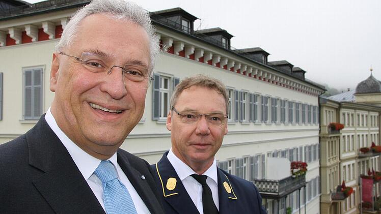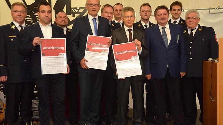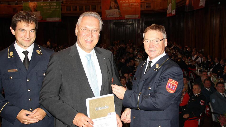 "Partner der Feuerwehren" Die Sparkasse Bad Kissingen sowie die Volks- und Raiffeisenbank Bad Kissingen/ Bad Brückenau wurden als "Partner der Feuerwehren" ausgezeichnet, weil sie die Floriansjünger durch eine Wanderausstellung und Spenden unterstützen. Die BayWa wurde geehrt, weil sie ihre Angestellten für den Feuerwehrdienst freistellt. Schließlich erhielt Staatssekretär Gerhard Eck, selbst seit 38 Jahren Mitglied der Freiwilligen Feuerwehr Donnersdorf (Landkreis Schweinfurt), das Feuerwehr-Ehrenkreuz in Gold - also sogar einen Tag vor Innenminister Joachim Herrmann.
