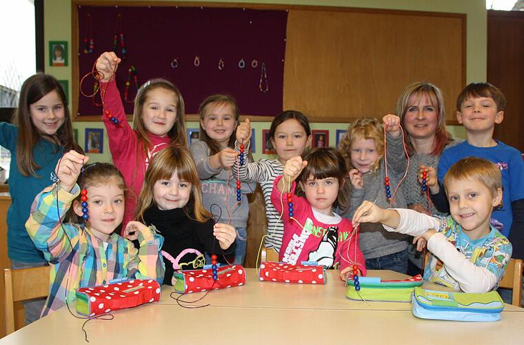 Von Anziehen bis Brandschutz "Ich kann mich schon alleine anziehen", berichtet Lorenz, wofür er eine seiner drei roten Perlen bekommen hat. Blätter beschriften, das Verhalten bei Feuer kennen, Verantwortung für sein Material übernehmen oder Worte in Silben zerlegen sind weitere Fähigkeiten, für die Erzieherin Cathleen Mende eine rote Perle auf die Schnur fädelt. Im September werden die 19 Vorschüler des Nüdlinger Kindergartens dann mit zehn roten und zehn blauen Perlen in der Schultasche eingeschult - und können die Kette gleich zum Zählen und Rechnen einsetzen.
