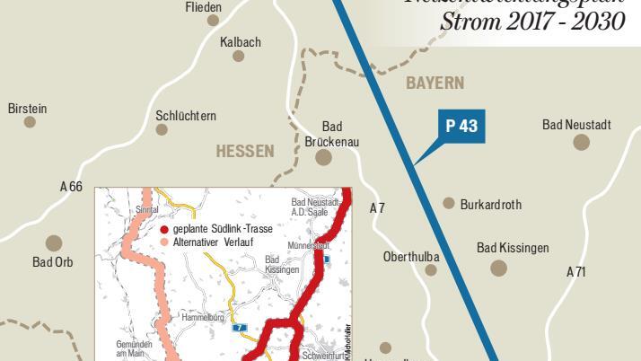 Wie bereits Anfang Juni berichtet, ist die Wechselstrom-Trasse P 43 momentan die einzige Variante, die noch im Gespräch ist. Die Taskforce Netzausbau Bayern des Bayerischen Staatsministeriums für Wirtschaft, Landesentwicklung und Energie hatte zuvor darüber informiert, dass die Trasse P 44 (von Altfeld/Thüringen nach Grafenrheinfeld), die ursprünglich noch mit in der Planung war, mitsamt der Alternativen entfallen war. Die komplett durch Hessen verlaufende Variante zur P 43 (sogenannte "P 43/mod" (von Mecklar über Dipperz nach Urberach) wurde damals ebenfalls verworfen.