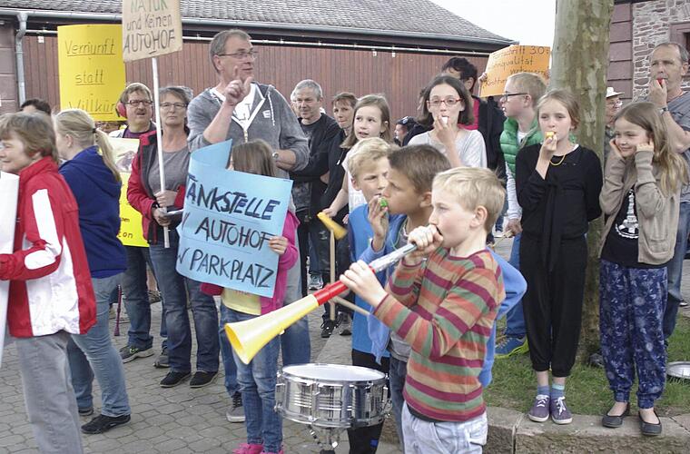 "Wir sind hier, wir sind laut, weil man uns die Heimat klaut", skandierten zahlreiche, mit Pauken, Rasseln und Pfeifen bestückte Jugendliche vor dem Rathaus, in dem der Rat seine vorgezogene, nichtöffentliche Sitzung abhielt. "Wir wollen kein Gewerbegebiet in Langendorf. Nehmen sie unsere Befürchtungen und Ängste ernst. Sogar unsere Jugend engagiert sich für die Heimat", schmetterte der Sprecher der Initiative, Stefan Rehberger, den Gemeinderäten hinter den verschlossenen Türen und Fenstern per Megaphon entgegen, was die Protestierenden mit tosendem Beifall bedachten.