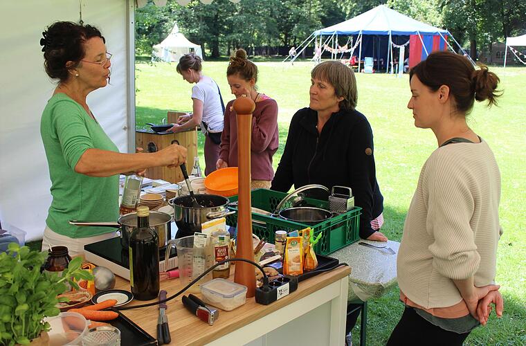 Tatsächlich hatten sich diejenigen, die schon am Donnerstag angereist waren, vom Wetter nicht stören lassen und teils mit Schirm oder Kapuze oder einfach im Regen vor der Bühne getanzt. Zwar blieb der ganz große Ansturm an den ersten Festivaltagen noch aus, doch gerade die vielen kleinen Workshops wie Koch- oder Entspannungs- oder Malkurse wurden gut angenommen. Noch bis Sonntag stehen Musik und Entspannung im Luitpoldpark im Mittelpunkt. Am Freitag spielt ab 19.30 Uhr "Matze Rossi" auf der Hauptbühne, im Anschluss übernimmt "Pohlmann". Am Samstag findet ab 20 Uhr ein Spendenkonzert zugunsten der Menschen in der Ukraine statt. Zum Abschluss tritt am Sonntag ab 20.30 Uhr das Berliner Duo "Berge" auf. Zu den Konzerten gibt es jeweils auch gesonderte Tickets an der Abendkasse.