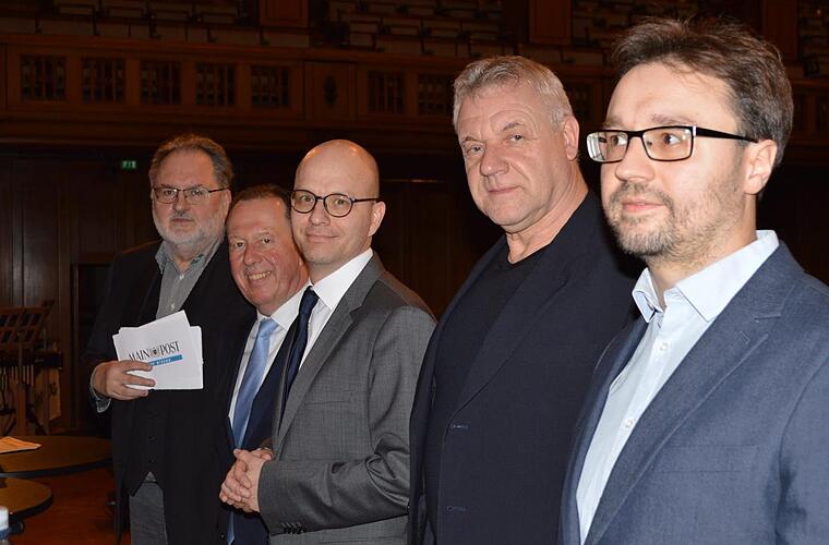 Etwas konkreter wurden die Diskussionsteilnehmer beim Thema Klimawandel. Die "klimaneutrale Stadt" als Sammelbegriff für theoretisch formulierte Ziele, die dann möglicherweise gar nicht einzuhalten sind, lehnte Vogel ab und sprach sich eher für "konkrete Maßnahmen" aus, wie zum Beispiel beim Ausbau des Berliner Platzes den "Verkehr der Zukunft" im Blick zu haben, oder ein klimafreundliches Gebäude-Management zu betreiben. Schneider setzte auf die innovativen Kräfte der Stadtwerke. Er würde zum Beispiel gern die "Wasserstoff-Wirtschaft" ankurbeln und überall in den historischen Gebäuden der Stadt auf Blockheizkraftwerke umrüsten.