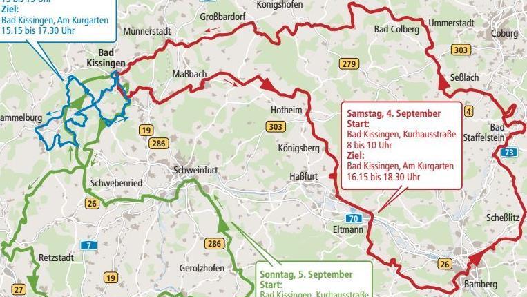 Rund 110 Teams starten in Bad Kissingen am Wochenende, 3. bis 5. September, in ihren Oldtimern. Auf drei Runden durch Nordbayern, samt einem Abstecher nach Thüringen, werden die Teilnehmer in ihren betagten Gefährten 580 Kilometer zurücklegen. "Von Welterbe zu Welterbe", hat Veranstaltungsleiter Karlheinz Schott (Würzburg) als aktuelle Devise herausgegeben. Nach dem kürzlichen Aufstieg von Bad Kissingen in die Liste der von der Unesco geadelten Orte boten sich im neuen Dreiklang Würzburg und Bamberg als Zwischenziele an. Nach einer kleinen Rundfahrt am Freitagnachmittag zum Üben und Aufwärmen über 80 Kilometer steigert sich die Streckenlänge von 300 Kilometern am Samstag auf 200 Kilometer am Sonntag.