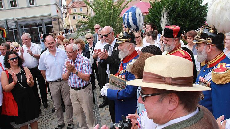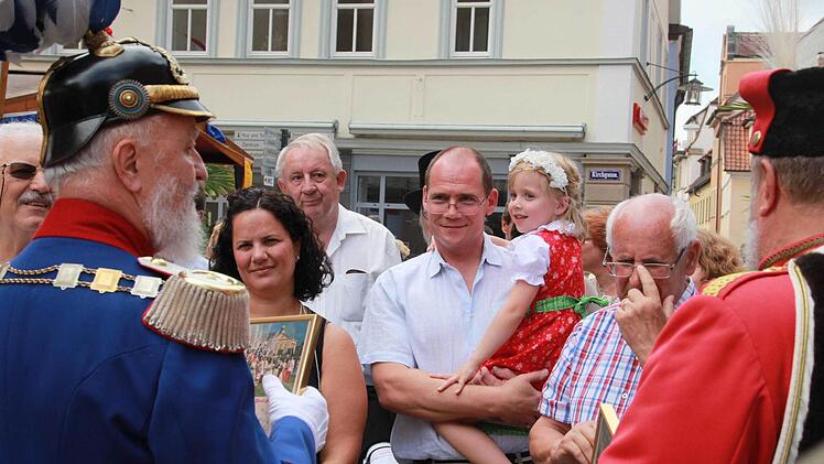 Von einigen der "Historischen" erhielten die Vertreter der Partnerstädte heuer ein Foto mit den geschichtsträchtigen Persönlichkeiten, die ihre Spuren in der Stadt hinterlassen haben. "Damit auch jeder weiß, warum wir das Rakoczy-Fest feiern", sagte Luitpold, Prinzregent von Bayern. Begleitet wurde der Empfang von einer Abordnung des Jugendmusikkorps unter der Leitung von Bernd Hammer.
