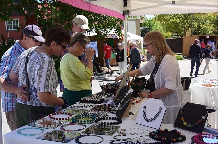 "Es war schon ein großes Fest", sagt die neue Allianz-Managerin Hannah-Rabea Grübl und geht auf die 16 Marktstände und die verschiedenen Pavillons ein, die Seite an Seite in der Raiffeisenstraße aufgebaut waren. Unter anderem waren Laubsäge-Arbeiten, Holzfiguren und Strickmode im Angebot. Zudem boten verschiedene Biohöfe der Region ihre Waren an, wieEdelbrände, Wein, Produkte aus Ziegenmilch oder vom Vogel Strauß. Manch einer schaute vielleicht nach einer neuen Tasche oder interessierte sich für Schmuck.