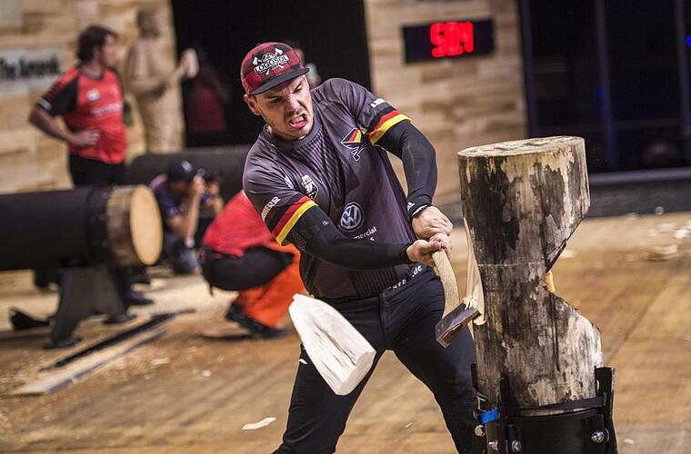 Rund 3500 Zuschauer verfolgten den Einzelwettbewerb der weltbesten Sportholzfäller in der Echo Arena und erlebten ein packendes Finale, das erst ganz am Ende entschieden wurde. Bis dahin hatte sich Robert Ebner zeitweise ein Kopf-an-Kopf-Rennen mit seinen Gegnern geliefert, musste am Ende aber dann doch seine Hoffnungen auf eine WM-Medaille begraben.