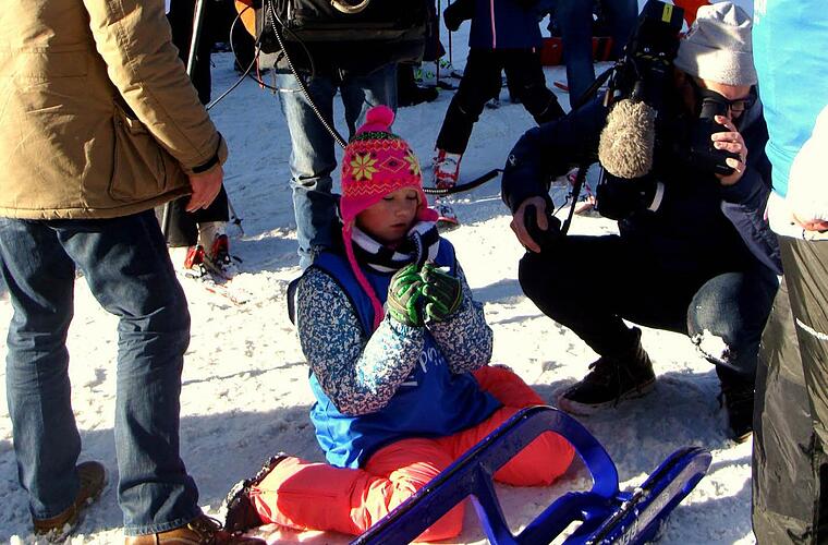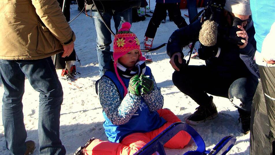 Der zuständige Autor Jens Tronicke aus München reiste mit einem Kamerateam aus Frankfurt in die Region, und die Wasserkuppe sowie das Staatsbad Bad Brückenau wurden zum Drehort. Von früh um neun bis abends um halb sechs wurde gedreht, Sophie und ihre Tante mussten den Tag des Rodelweltrekordversuchs und auch die Schlittenrückgabe nachstellen. Möglichst genau wie vor gut einem Jahr sollte alles sein und so suchten Tante und Nichte die gleichen Mützen und Skianzüge wie damals hervor. Die anfängliche Nervosität verflog bei den beiden Hauptdarstellerinnen schnell.
