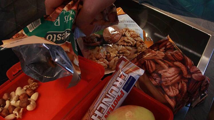 Stattdessen hat sie Obst, einen Eiweiß-Riegel oder Nüsse dabei. Vor allem die sind neu auf ihrer Einkaufsliste: Macadamia, Mandeln, Walnüsse. Noch etwas gab es früher nicht: "Pumpernickel-Brot ist mein bester Freund geworden", sagt sie. Kohlenhydrate hat sie reduziert. Statt zwei bis drei Teller Nudeln gibt es jetzt einen Teller Vollkornnudeln: "Wenn ich Kohlenhydrate esse, dann hochwertige."