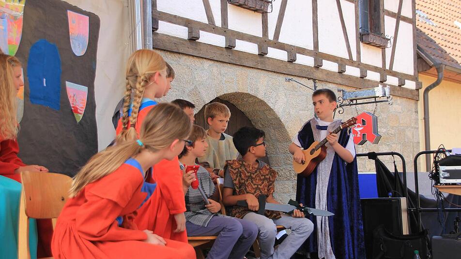 Ein halbes Jahr hatte Nicole Dippold mit ihrer 4. Klasse der Freiherr-von-Lutz-Grundschule ein Kindermuscial einstudiert. Bei "Musik und Märkte" hatten die Buben und Mädchen die Möglichkeit, ihre Stück vor großem Publikum aufzuführen. Und die Kinder machten ihre Sache richtig gut. Sie sangen und spielten auf der Bühne ihr Stück von tapferen Rittern, sittsamen Burgfräuleins, von Krieg und Frieden. Man merkte dem Spiel an, dass die Kinder lange und sorgsam ihre Rollen eingeübt hatten. Alles klappte perfekt und für die Kinder gab es reichlich Beifall von den Zuschauern.
