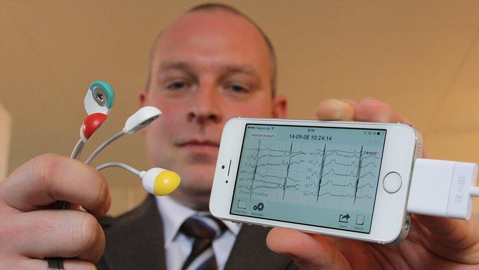 Patient Hermann Kirchner ist begeistert: "Man fühlt sich einfach sicher durch die tägliche Selbstkontrolle", berichtet er über die telemedizinische Betreuung durch die Herz- und Gefäßklinik in Bad Neustadt. Der 60-jährige Wegfurter war im August am Herzen operiert worden. Angefangen hatte alles mit starken Schwindelgefühlen, die Ärzte diagnostizierten ein Vorhofflimmern. Die Verödung von Gewebe an der Innenseite der Lungenvenen half. Während der Heilungsphase, also bis drei Monate nach der OP, kann es verstärkt zu Vorhofflimmern kommen. Über einen Tablet-Computer und EKG-Elektroden kann Hermann Kirchner seine Werte täglich checken lassen.
