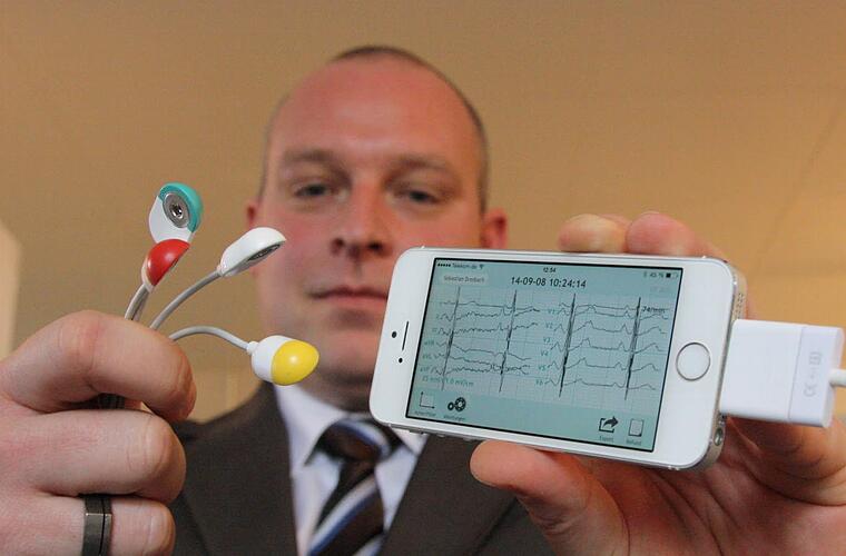 Studienassistentin Anne-Katrin Bötsch betreut das neue Projekt der Herz- und Gefäßklinik, das seit April diesen Jahres läuft. 35 Patienten nehmen oder nahmen bisher daran teil. "Die Resonanz war sehr positiv, die meisten Patienten hätten das iPad samt EKG nach den drei Monaten am liebsten noch länger behalten, weil sie sich so sicher damit fühlen." Nur ganz wenige Patienten haben laut Bötsch bislang die Teilnahme abgelehnt, obwohl das Durchschnittsalter der Betroffenen bei 60 Jahren liege, der älteste Patient sei 75 gewesen. "Manche haben eben mit Smartphones gar nichts am Hut", berichtet Bötsch.