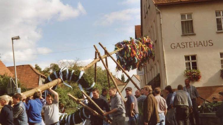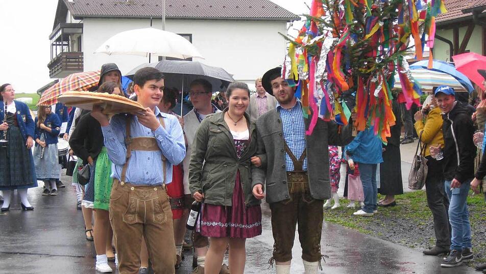 "Es war lange Zeit nichts", sagt Irene Heinle. Der Brauch war eingeschlafen, also waren "die Alten" gefragt, erklärt sie. Dass sie das kurzfristig an einem Donnerstag vor dem traditionellen Kirmes-Sonntag beschlossen hatten, trübte das Kirchweih-Vergnügen nicht. Die Kirmes-Gesellschaft feierte mit dem Dorf die Tradition wie schon seit vielen Jahrzehnten - nur eben als "Verheirateten-Kirmes". Einziger Unterschied neben den nicht mehr ledigen Pärchen: Anstelle der Plakate drehte ein "Plobursch" eine Runde durchs Dorf und machte mitsamt einer Schelle auf den Termin aufmerksam.