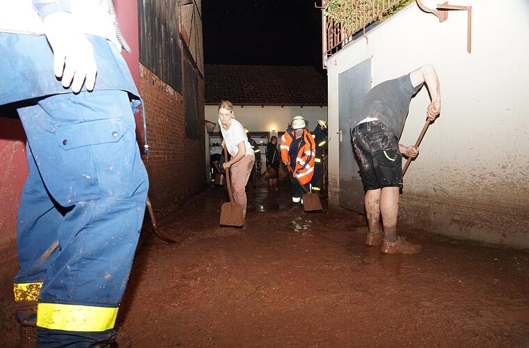 Reinhold Radler fasst es bis heute nicht. Lange konnte er über die Ereignisse an dem Abend und in der Nacht kaum reden, ohne in Tränen auszubrechen. Weil sein Haus an der tiefsten Stelle der Ortsdurchfahrt liegt, liefen bei ihm die Keller und der Hof voll. Tagelang schaufelte der 70-Jährige mit seiner Familie und Nachbarn, um die schmierige Pampe vom Hof zu schaffen. Dankbar ist er der Feuerwehr für die anfängliche Unterstützung.