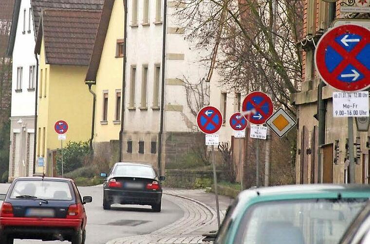 Ungefähr 100 Verkehrsschilder stehen seit einer Woche in der Maßbacher Hauptstraße. Beidseitig weisen sie auf ein absolutes Halteverbot hin, das bis einschließlich 28. März wochentags zwischen 9 und 16 Uhr gilt.