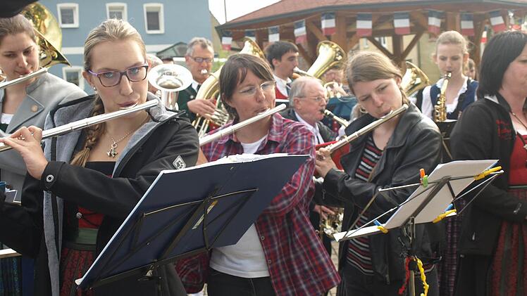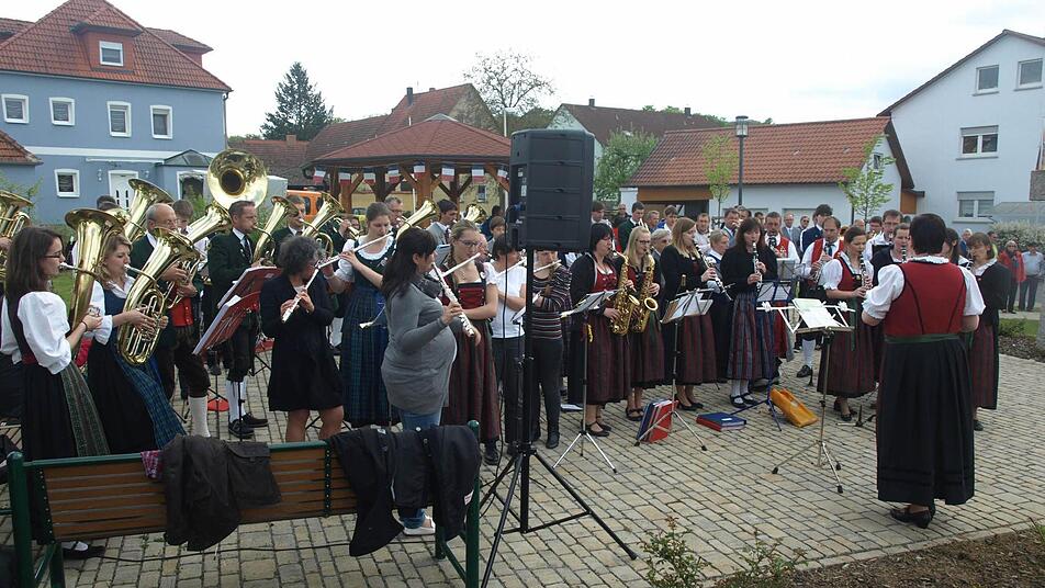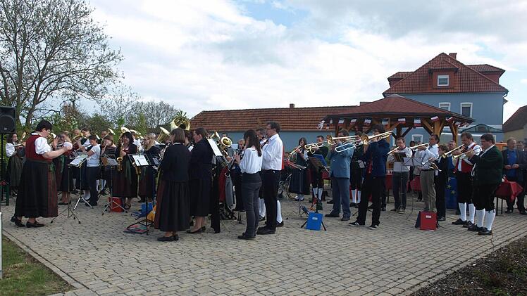 Die Pfarrer Balthasar Amberg und Philipp Klein gaben der Stele den kirchlichen Segen. Den Festakt schlossen die Nationalhymnen, die die 70 Musiker intonierten.