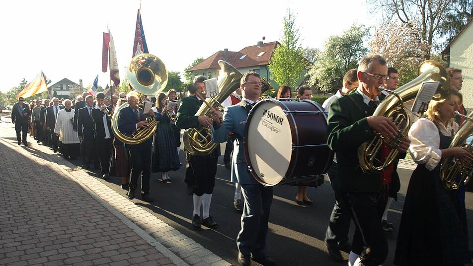 Mit Marschmusik zogen alle zum Pfarrheim, um dort die Feier fortzusetzen.