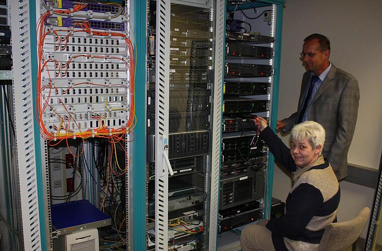 Es ist gar nicht so leicht, in das elektronische "Kleinhirn" der Behörde vorzudringen. Es befindet sich im Keller, ist mit stabilen Türen, Kamera und speziellen Schlössern gesichert. Der Serverraum verfügt über Klimaanlage und Feuermelder. Die summenden Rechner sind wenig spektakulär, sie finden Platz in einigen Glasschränken.