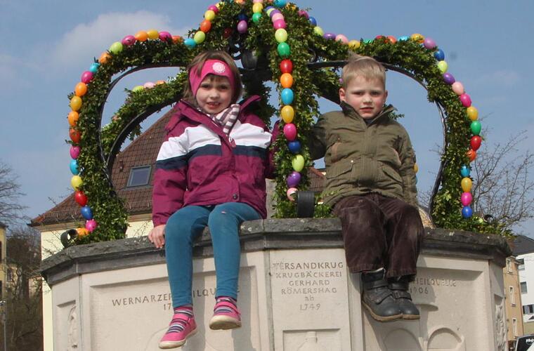 In vielen Gemeinden ist es zu Ostern Brauch, Brunnen mit bunten Eiern aufwendig zu schmücken.
